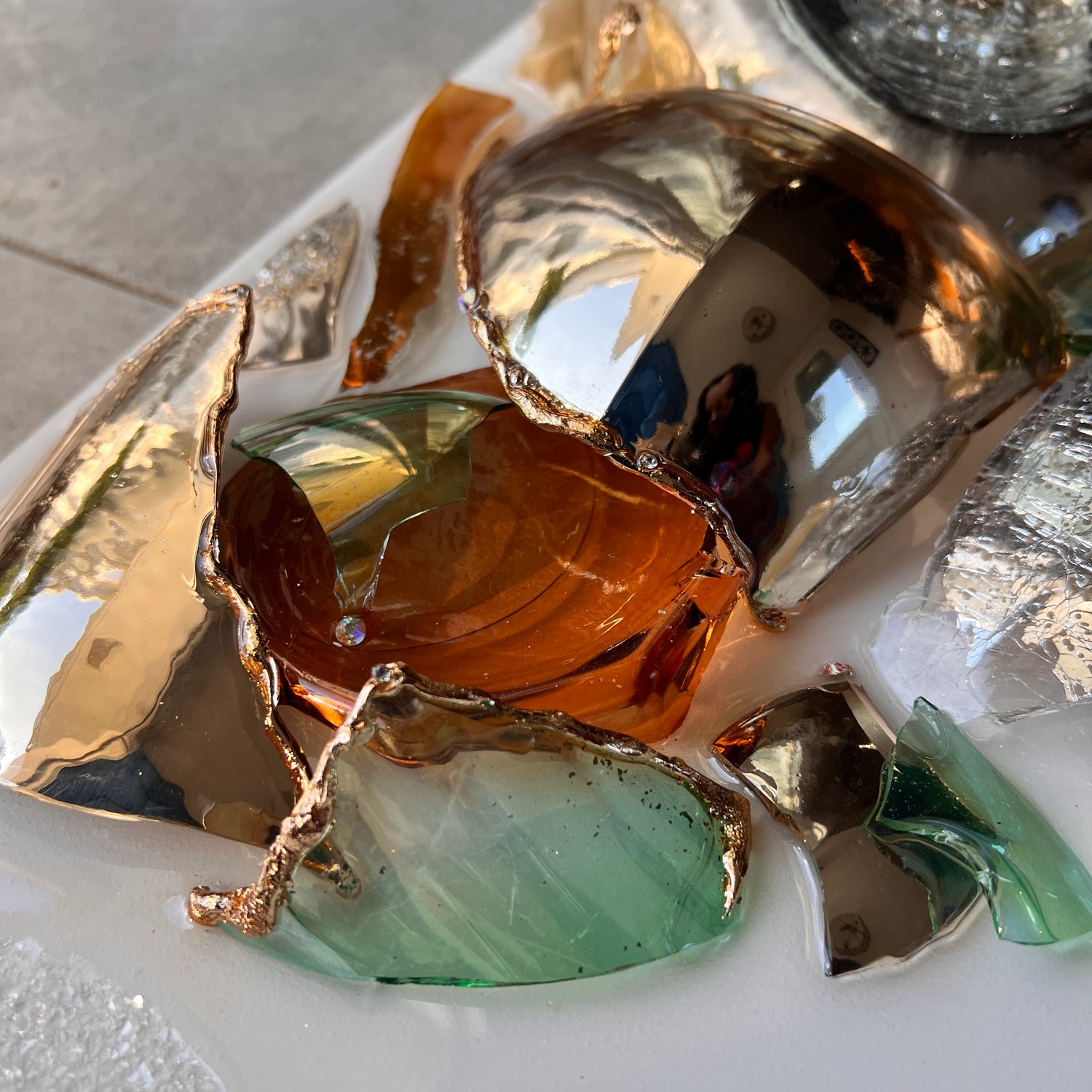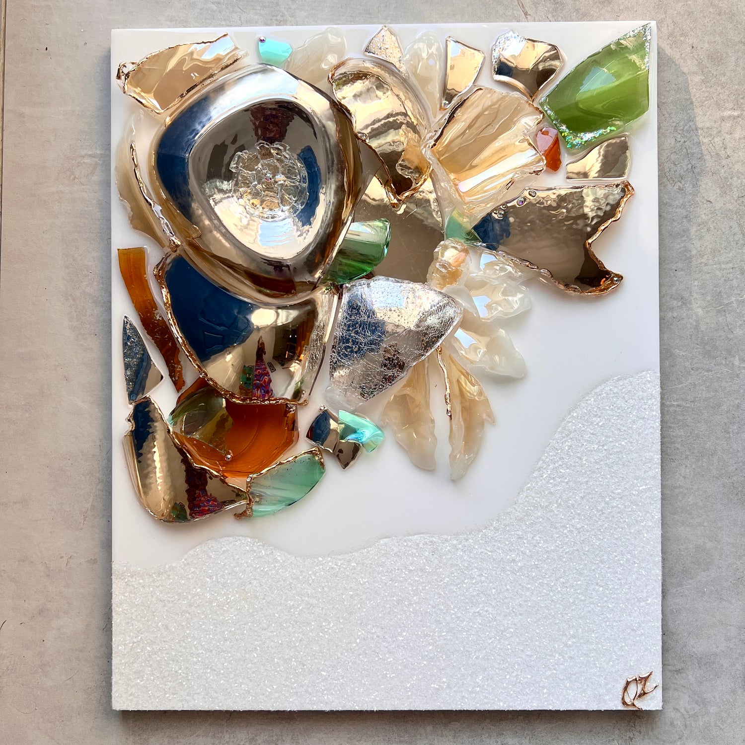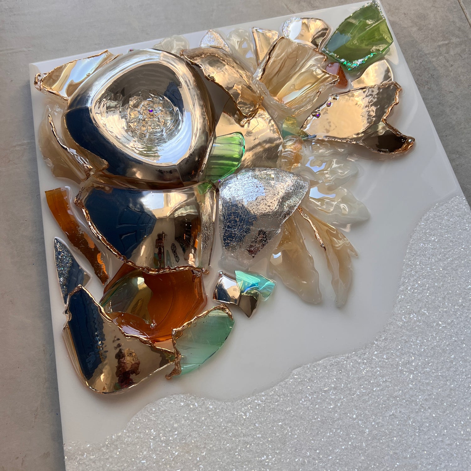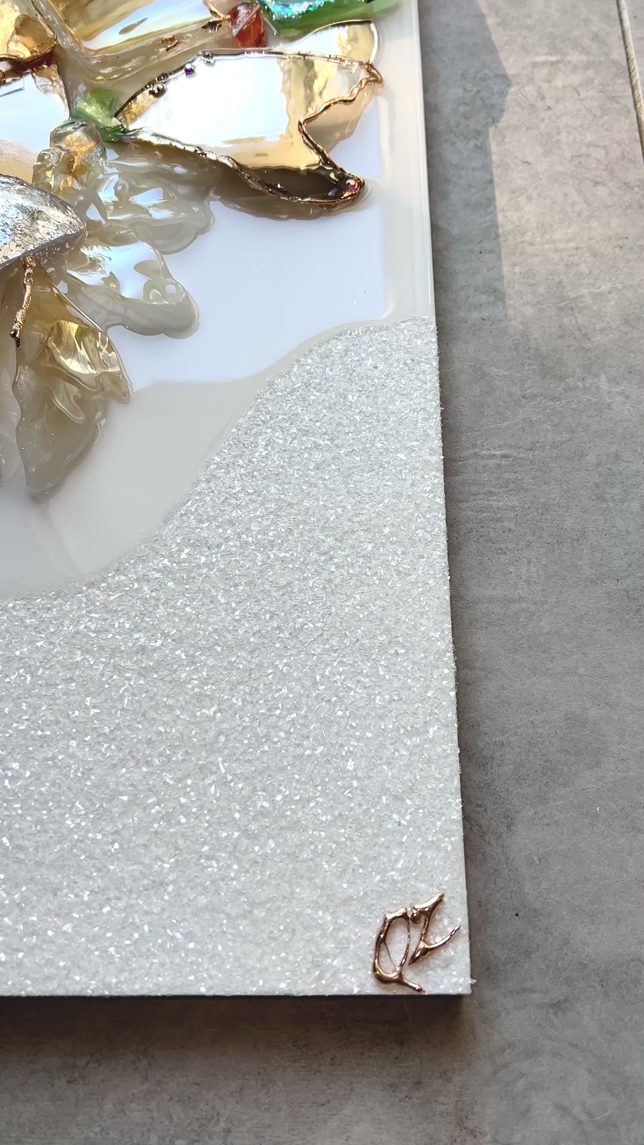 Details: Resin & Glass artwork on wood panel with Diamond Dust detail