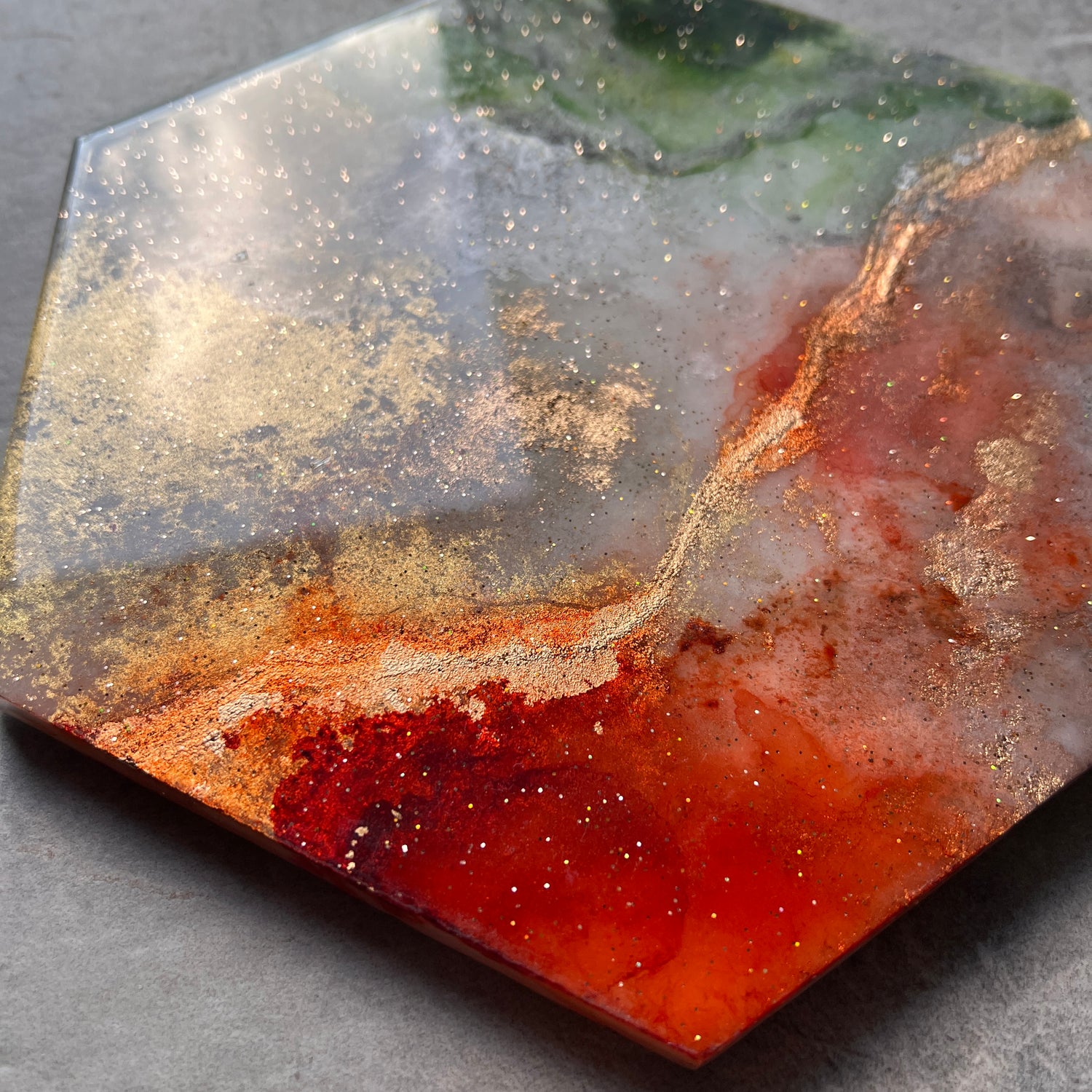 Sealed with a high-gloss resin finish, the piece gleams with a mirror like shine that enhances every shimmering accent.