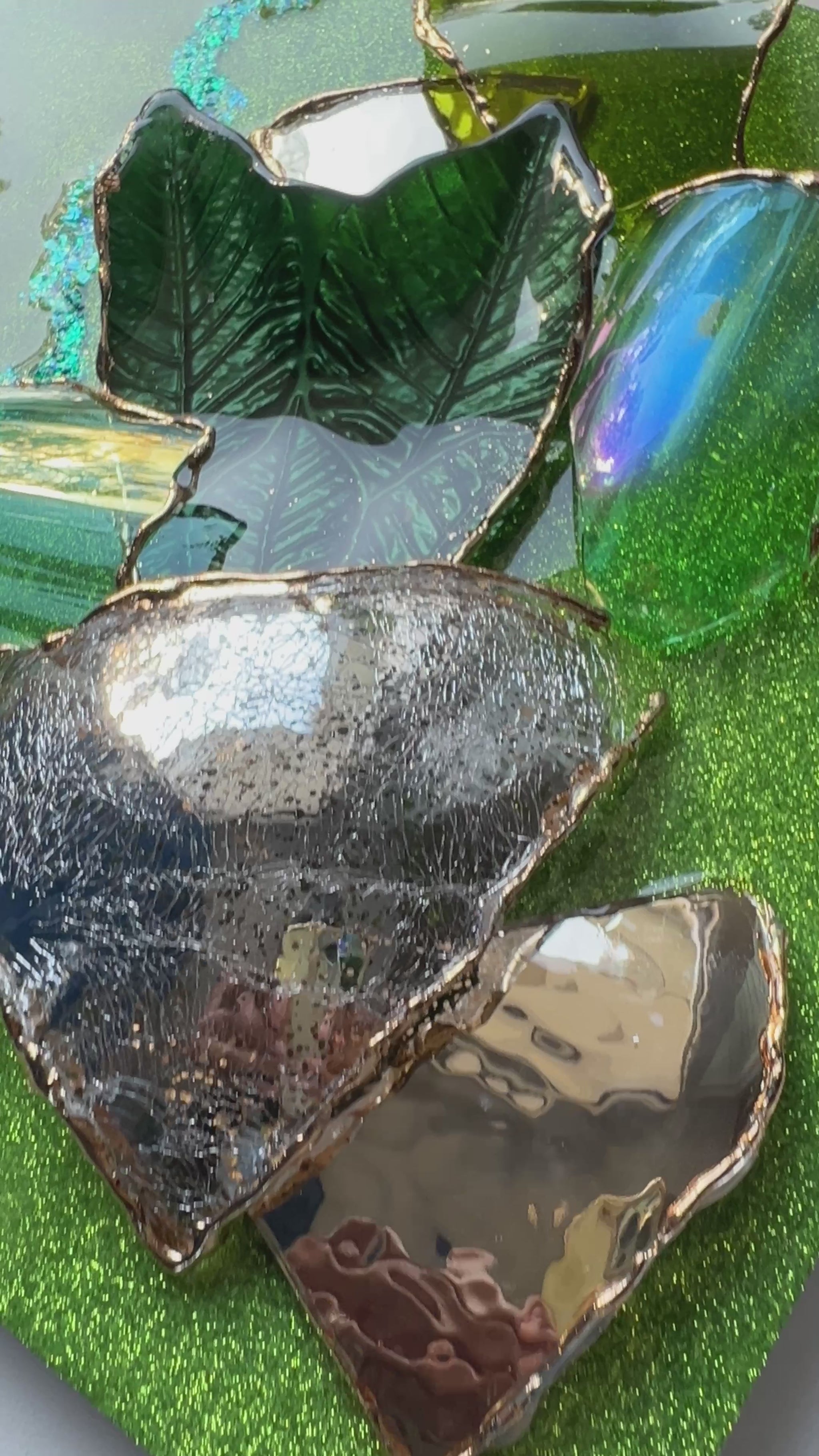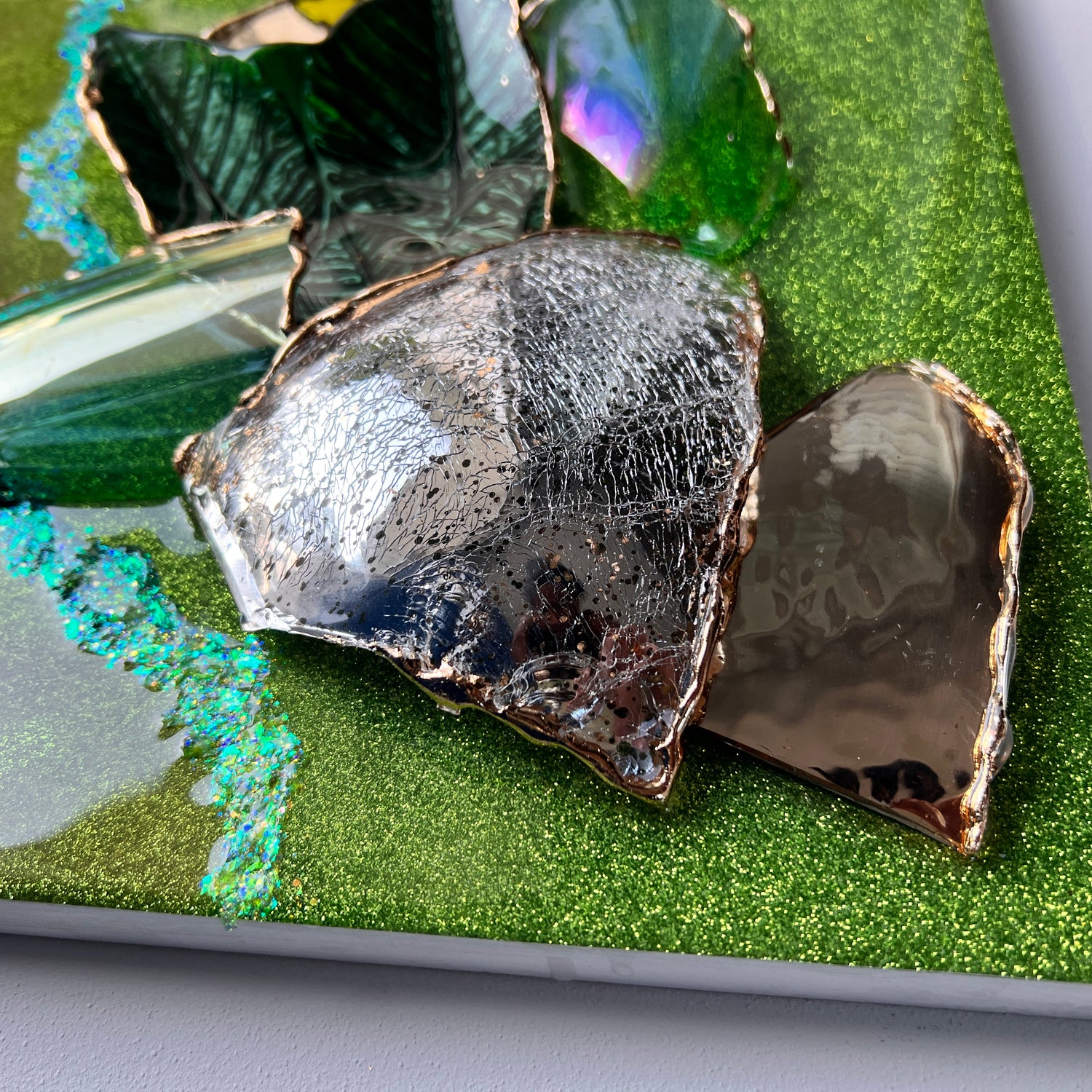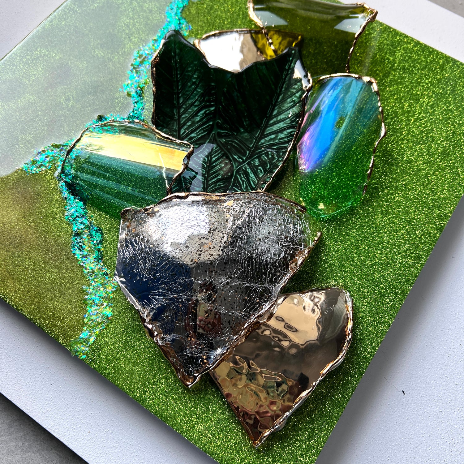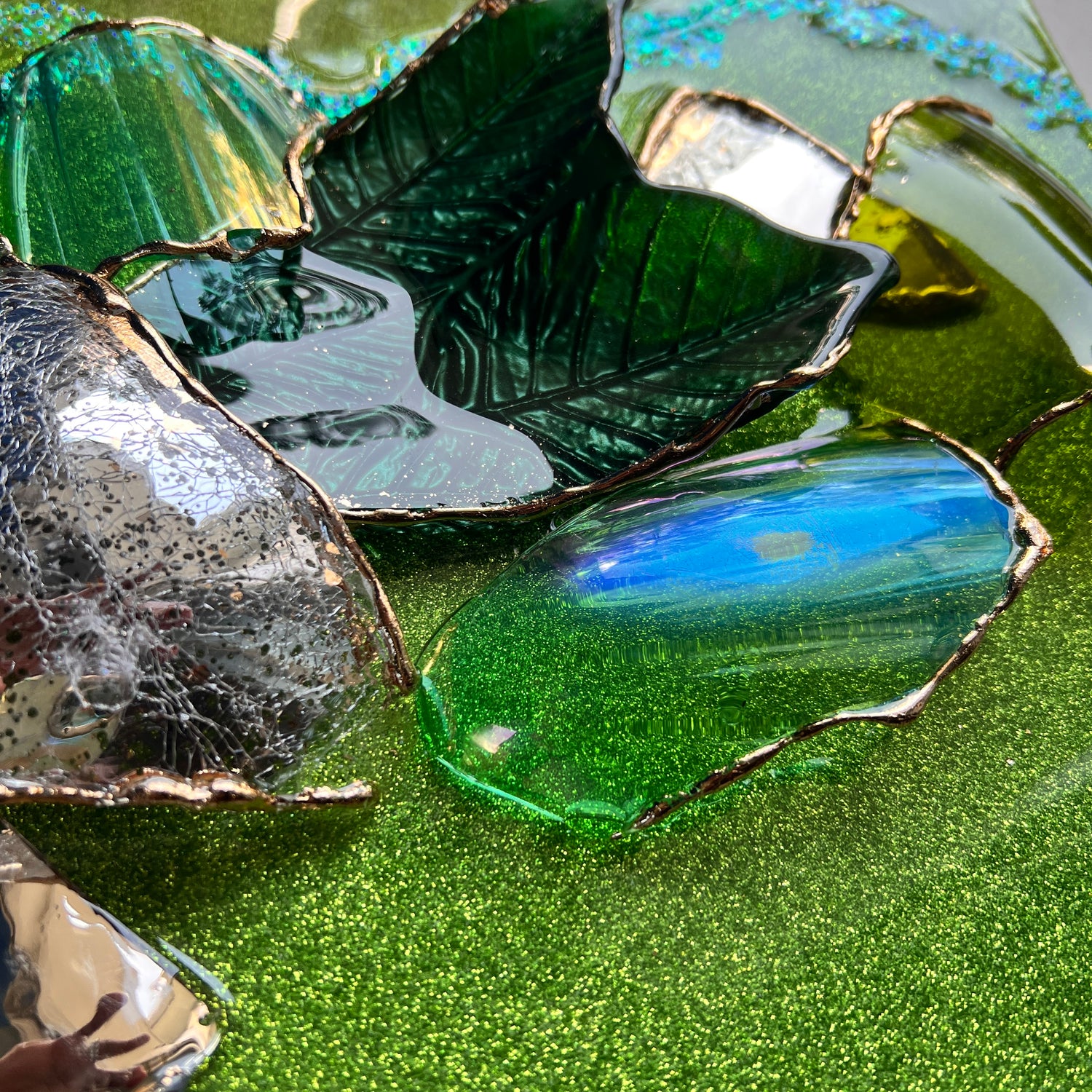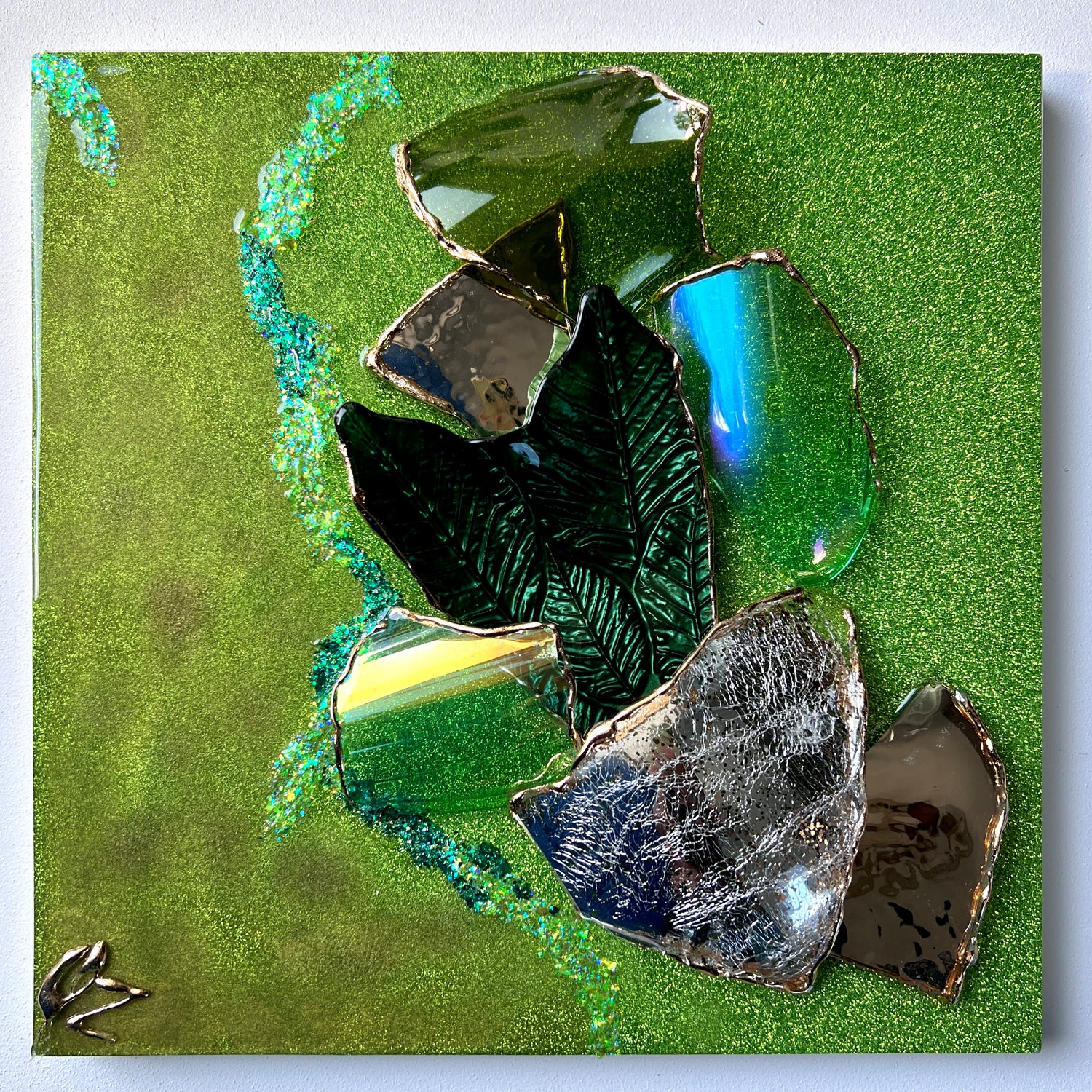 Leaves break, regrow, and return with every season. Each cycle a quiet promise that nothing truly ends. In this artwork, the green shards and etched leaves rise together, reflecting renewal’s rhythm. What once fractured becomes part of a new beginning, proof that every season carries its own fresh breath of life.